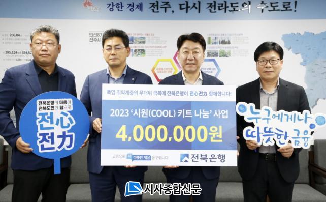 ¡®½Ã¿ø(COOL) ŰƮ ³ª´®¡¯ »ç¾÷Àº ÀüºÏÀºÇàÀÇ ¿©¸§Ã¶ »çȸ°øÇå»ç¾÷À¸·Î, ÀüºÏÀºÇàÀº À̳¯ Äð¸ÅÆ®¿Í Ź»ó¿ë¼±Ç³±â, Äð½ºÄ«ÇÁ µî ¿©¸§³ª±â »ýÇÊǰÀ¸·Î ±¸¼ºµÈ 400¸¸ ¿ø »ó´çÀÇ ½Ã¿øÅ°Æ® 100»óÀÚ¸¦ ÀüÁֽÿ¡ Àü´ÞÇß´Ù.