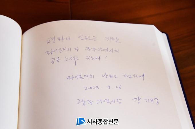 °±âÁ¤ ½ÃÀåÀº À̳¯ ±¤ÁÖµðÀÚÀκñ¿£³¯·¹, ¼¼°èÀαǵµ½ÃÆ÷·³, 2025³â ¼¼°è¾ç±Ã¼±¼ö±Ç´ëȸ µî ±¤ÁÖ¿¡¼ ¿¸®´Â ±¹Á¦Çà»ç¿¡ ÃÊûÇϰí È«º¸ Çù·Âµµ Á¦¾ÈÇß´Ù.