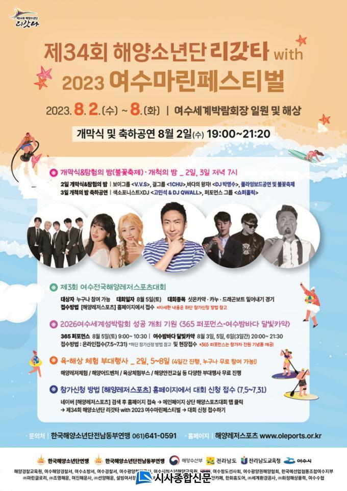 ¿©¼ö½Ã¿Í Çѱ¹Çؾç¼Ò³â´ÜÀÌ ÁÖÃÖÇϰí Çѱ¹Çؾç¼Ò³â´Ü Àü³²µ¿ºÎ¿¬¸Í¿¡¼ ÁÖ°üÇÏ´Â À̹ø Çà»ç´Â ´Ù¾çÇÑ ÃàÇϰø¿¬°ú ÇØ¾ç·¹Àú½ºÆ÷Ã÷ ´ëȸ ¹× üÇè ÇÁ·Î±×·¥ µîÀ¸·Î ±¸¼ºµÆ´Ù. 2ÀÏ(¼ö) Àú³á 7½Ã 30ºÐºÎÅÍ ÁøÇàµÇ´Â °³¸·½Ä¿¡´Â ÃÊ´ë°¡¼ö ¹Ú¸í¼ö, °É±×·ì ¿øÃòÀÇ ÃàÇϰø¿¬À» ½ÃÀÛÀ¸·Î ÇØ»ó¿¡¼ ÆîÃÄÁö´Â ÇöóÀ׺¸µå °ø¿¬ ¹× ºÒ²É ÃàÁ¦ µîÀÌ À̾îÁú ¿¹Á¤ÀÌ´Ù.