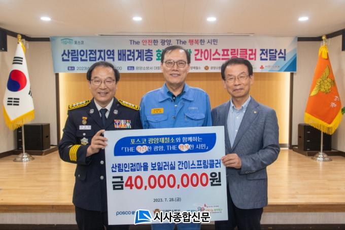 ÇÑÆí, ±¤¾çÁ¦Ã¶¼Ò´Â ¾î¸£½Å ÁְŰø°£¿¡ ¾ÈÀü¹Ù¸¦ ¼³Ä¡Çϰí Áö¿ª¹ÎµéÀ» ´ë»óÀ¸·Î ÀÀ±Þóġ ±³À°À» ½Ç½ÃÇÏ´Â µî Áö¿ª»çȸ¿Í »ó»ý¡¤°øÁ¸Çϱâ À§ÇØ ±â¾÷°ú »çȸ°¡ ÇÔ²² ¹ßÀüÇÏ´Â ¸ðµ¨À» Á¦½ÃÇÏ´Â Community with POSCO(Áö¿ª»çȸ¿Í ÇÔ²²Çϴ ȸ»ç) ½ÇÇöÀ» À§ÇØ Àû±Ø ³ë·Â ÁßÀÌ´Ù.