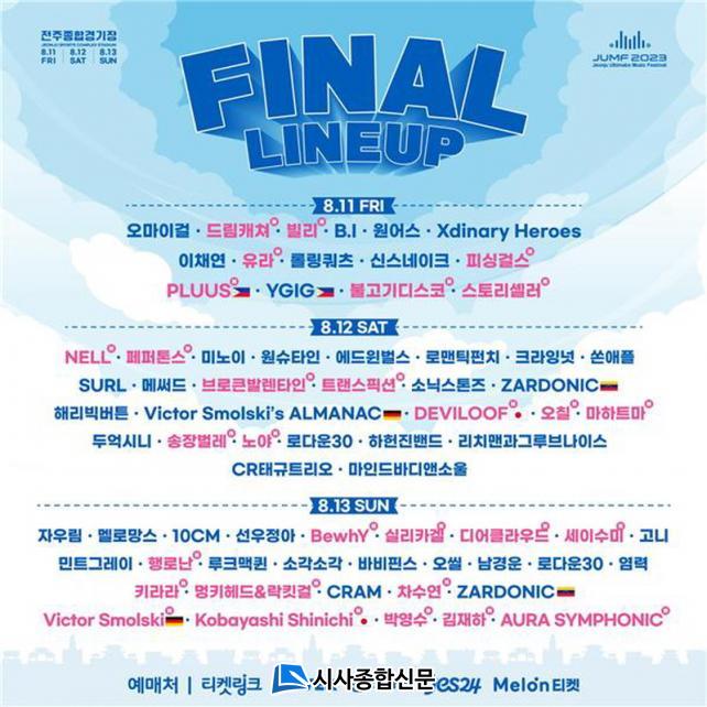´çÀå ÀüÁÖÁ¾ÇÕ°æ±âÀå ¹× ¾ß±¸Àå ÀÏ´ë¿¡¼ °³ÃÖµÉ ¹®ÈÇà»ç´Â ¿À´Â 8¿ù 11ÀϺÎÅÍ 13ÀϱîÁö 3Àϰ£ ¡®2023 ÀüÁÖ¾óÆ¼¹Ô¹ÂÁ÷Æä½ºÆ¼¹ú(JUMF)¡¯·Î ½ÃÀ۵ȴÙ. JUMF¿¡¼´Â K-POP°ú ROCK, ¾îÄí½ºÆ½ µî ´Ù¾çÇÑ À帣ÀÇ °ø¿¬À» ¼±º¸À̸ç, ÀüÁÖ¾óÆ¼¹Ô¹ÂÁ÷Æä½º¹ú(ÀÌÇÏ JUMF)À» ã´Â °ü°´µé¿¡°Ô »ö´Ù¸£°í Ưº°ÇÑ ¹«´ë¸¦ ¼±¹°ÇÑ´Ù.