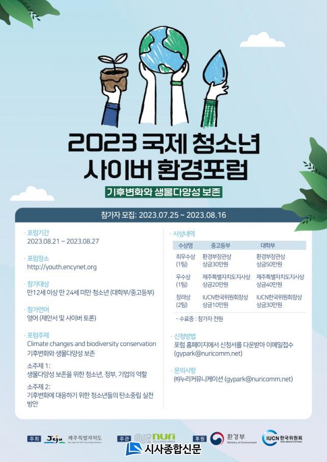 Á¦ÁÖµµ°¡ ÁÖÃÖÇϰí ȯ°æºÎ¿Í ¼¼°èÀÚ¿¬º¸Àü¿¬¸Í(IUCN) Çѱ¹À§¿øÈ¸°¡ ÈÄ¿øÇÏ´Â À̹ø Æ÷·³Àº ¡®±âÈĺ¯È¿Í »ý¹°´Ù¾ç¼º º¸Á¸(Climate changes and biodiversity conservation)¡¯À» ÁÖÁ¦·Î ±¹Á¦Ã»¼Ò³â »çÀ̹öȯ°æÆ÷·³ À¥»çÀÌÆ®(http://youth.encynet.org)¿¡¼ ÁøÇàµÈ´Ù.
