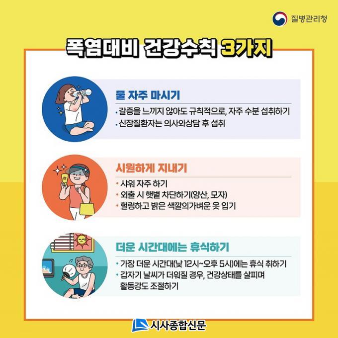 ÇÑÆí, ±èº¹´ö ±¤¾ç½Ã º¸°Ç¼ÒÀåÀº ¡°¿Â¿ÁúȯÀº °Ç° ¼öÄ¢À» Àß ÁöŰ´Â °Í¸¸À¸·Îµµ ¿¹¹æÀÌ °¡´ÉÇÑ ¸¸Å ¹«´õÀ§ ½Ã Àå½Ã°£ÀÇ ½Ç¿Ü Ȱµ¿À» ÀÚÁ¦Çϰí ÃæºÐÇÑ ÈÞ½ÄÀ» ÃëÇÏ´Â µî ÁÖÀǰ¡ ÇÊ¿äÇÏ´Ù¡±°í °Åµì °Á¶ÇÏ¸ç ¡°°Ç°ÇÑ ¿©¸§³ª±â¸¦ À§ÇØ ´õ¿î ½Ã°£´ë ÈÞ½ÄÇϱâ, ¹° ÀÚÁÖ ¸¶½Ã±â µî °Ç° ¼öÄ¢À» ÁؼöÇØÁÙ °Í¡±À» ´çºÎÇß´Ù.