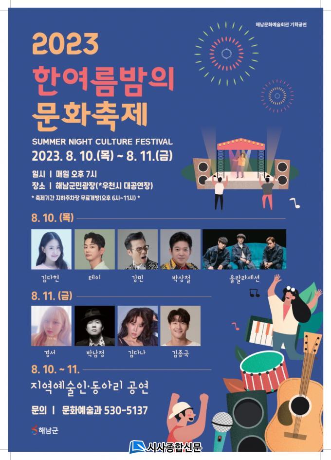 ÇØ³²±ºÀº ¿À´Â 8¿ù 10~11ÀÏ ¿ÀÈÄ 7½ÃºÎÅÍ ÀαⰡ¼öµéÀÇ ¶ß°Å¿î ¹«´ë·Î ²Ù¸çÁö´Â 2023 ÇÑ¿©¸§¹ãÀÇ ¹®ÈÃàÁ¦¸¦ ±º¹Î±¤Àå Æ¯¼³¹«´ë¿¡¼ °³ÃÖÇÑ´Ù.