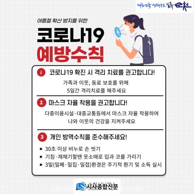 | ¼øÃµ½Ã, ¿©¸§Ã¶ Äڷγª19 È®»ê ¹æÁö¸¦ À§ÇÑ °³Àι濪¼öÄ¢ Áؼö ´çºÎ |
