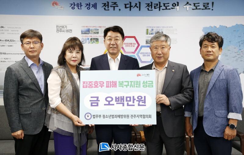 ÀüÁֽà °ü°èÀÚ´Â ¡°Áö¿ªÀÇ ¾î·Á¿î »óȲ¿¡ ¾Æ³¦¾ø´Â ÈÄ¿øÀ» ÇØÁֽйý¹«ºÎ û¼Ò³â¹üÁË¿¹¹æÀ§¿ø ÀüÁÖÁö¿ªÇùÀÇȸ¿¡ °¨»ç¸¦ µå¸°´Ù¡±¸é¼ ¡°È£¿ìÇÇÇØ¿Í À̾îÁö´Â Æø¿°À¸·Î ¾î·Á¿î ȯ°æ¿¡¼ »ýȰÇϰí ÀÖ´Â ¾î·Á¿î ÀÌ¿ô¿¡°Ô »ì¾Æ°¡´Â Å« ÈûÀÌ µÇ´Â ¸¸Å Áö¼ÓÀûÀÎ °ü½ÉÀ» °¡Á®´Þ¶ó¡±°í ¸»Çß´Ù.