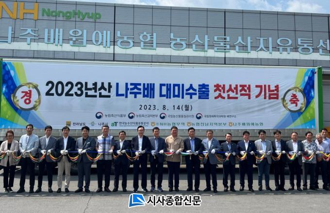 Àü¶ó³²µµ´Â Çѱ¹ÀÇ ´ëÇ¥ °úÀÏ ³ªÁÖ ÇÞ¹è 140ÅæÀ» ¹Ì±¹À¸·Î ¼öÃâÇϱâ À§ÇÑ ¼öÃâ »óÂ÷½ÄÀÌ 14ÀÏ ³ªÁÖ¹è¿ø¿¹³óÇù ¼öÃâ¼±°úÀå¿¡¼ ¿·È´Ù°í ¹àÇû´Ù.