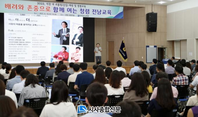 [½Ã»çÁ¾ÇսŹ® = ¿À½ÂÅà ±âÀÚ] Àü¶ó³²µµ±³À°Ã»(±³À°°¨ ±è´ëÁß)ÀÌ 8¿ù 16ÀÏ(¼ö) ¿ÀÀü û»ç 2Ãþ ´ëȸÀǽǿ¡¼ º»Ã» Àü Á÷¿øÀ» ´ë»óÀ¸·Î¡®2023³â Á÷Àå ³» ±«·ÓÈû(°©Áú) ¿¹¹æ û·Å ±³À°¡¯À» ½Ç½ÃÇß´Ù.