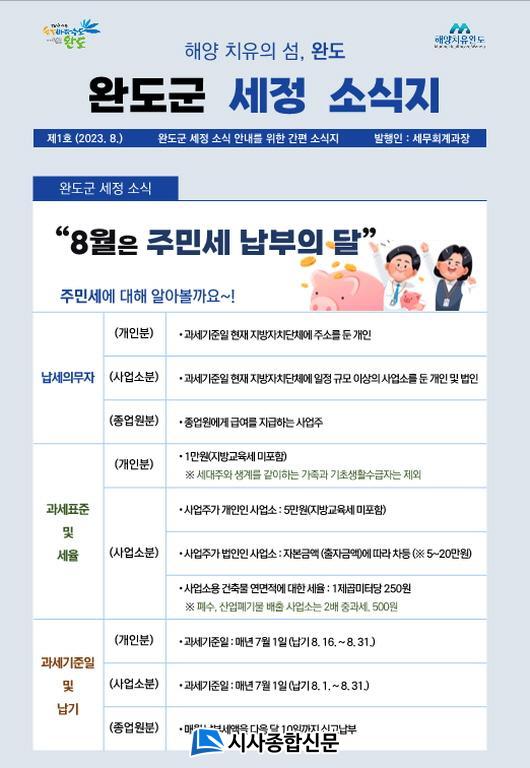 À̹ø¿¡ ¹ßÇàµÈ ù È£ ¡®¼¼Á¤ ¼Ò½ÄÁö¡¯¿¡´Â 8¿ù¿¡ ºÎ°úµÇ´Â Áֹμ¼ ¾È³»¿Í ÀÚµ¿Â÷¼¼ ¿¬³³ ½Åû µî ¾Ë¾ÆµÎ¸é À¯ÀÍÇÑ Áö¹æ¼¼ ÇÒÀÎ ÆÁ(Tip), °£´ÜÇÑ ¼¼±Ý °ü·Ã ±Ã±ÝÁõ¿¡ ´ëÇØ ¾Ë¾Æº¸´Â ³»¿ëÀ» ´ã°í ÀÖ´Ù.