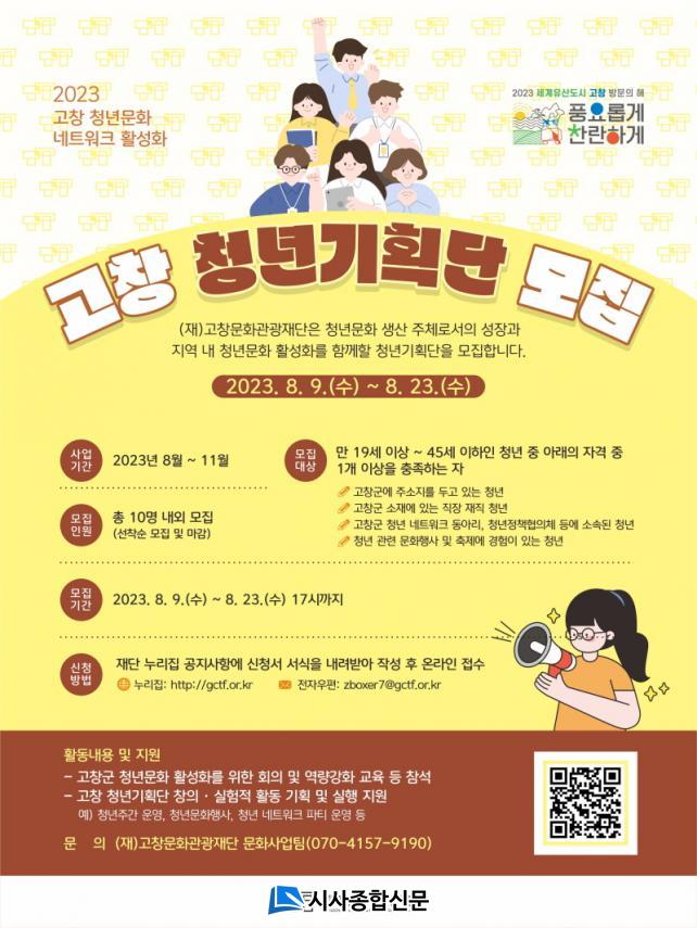 ¸ðÁýÀοøÀº ÃÑ 10¸í ³»¿Ü·Î ¼±Âø¼ø ¸ðÁýÇϰí, û³â¹®È Ȱ¼ºÈ¸¦ À§ÇÑ È¸ÀÇ ¹× ¿ª·®°È ±³À° À̼ö ÈÄ Ã¢ÀÇ¡¤½ÇÇèÀû Ȱµ¿ ±âȹ°ú ½ÇÇàÀ» Áö¿øÇÒ °èȹÀÌ´Ù.