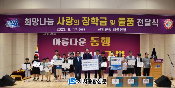 À̳¯ Àü´Þ½Ä¿¡´Â 1004¼¶ ½Å¾È±º 20¸íÀÇ ÀåÇлý¿¡°Ô ¿ù 5¸¸ ¿ø¾¿ 2³â°£ 2,400¸¸ ¿ø ÀåÇбݰú 3¸í¿¡°Ô 120¸¸ ¿ø »ó´çÀÇ ÄÄÇ»Å͸¦ Àü´ÞÇÏ¿´°í, ½Å¾È±ºº¹ÁöÀç´Ü(ÀÌ»çÀå ÀÌÃæ¸¸)¿¡ 2¾ï ¿ø »ó´çÀÇ »ýÇÊǰÀ» Ãë¾à°èÃþ¿¡ Áö¿øµÇµµ·Ï ÁöÁ¤ ±âŹÇß´Ù.