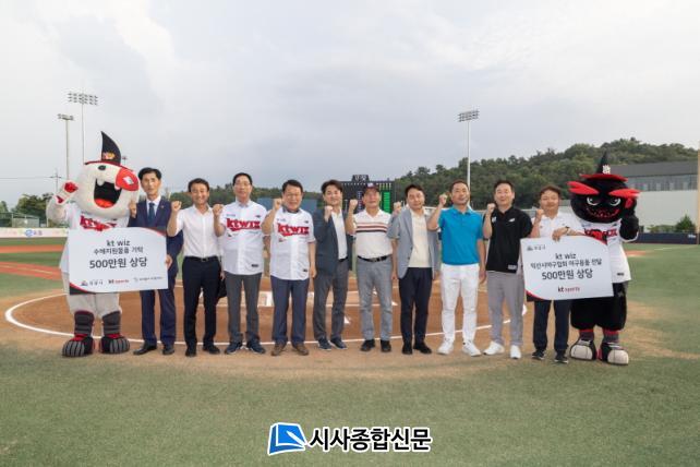 ÇÑÆí, kt wiz ±¸´ÜÀº Áö¿ª ¾ß±¸¹ßÀüÀ» À§ÇØ ÀÍ»ê¾ß±¸Çùȸ¿¡ 500¸¸¿ø »ó´çÀÇ ¾ß±¸¿ëǰÀ» Àü´ÞÇß°í, Àú¼Òµæ°¡±¸¸¦ µ½±â À§ÇÑ 500¸¸¿ø »ó´çÀÇ ¹°Ç°À» ÀÍ»ê½ÃÀÚ¿øºÀ»ç¼¾ÅÍ¿¡ ±âŹÇß´Ù.