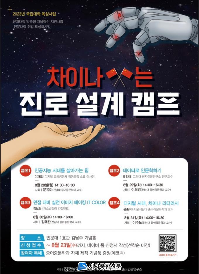 8¿ù 28ÀϺÎÅÍ 31ÀϱîÁö ³ªÈê°£ Àü³²´ë Àι®´ë 1È£°ü ±è³²ÁÖ ±â³äȦ¿¡¼ Áß¾îÁß¹®ÇÐ Àü°ø ÇлýµéÀ» ´ë»óÀ¸·Î Áø·Î ¼³°èÀÇ ÀåÀÌ ¿¸°´Ù. Àι®ÇÐÀû ¼Ò¾ç°ú ÷´Ü ±â¼úÀ» À¶ÇÕÇØ, Àι®ÇÐ Àü°ø ÇлýµéÀÇ ¹Ì·¡ ¼³°è ¹æÇâ°ú ÇØ¹ýÀ» ÇÔ²² ³íÀÇÇÏ´Â ÀÚ¸®´Ù.
