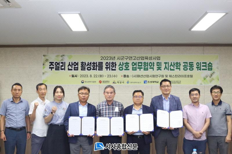 À̹ø ¿öÅ©¼óÀº ÀÍ»ê½Ã ÆÐ¼ÇÁÖ¾ó¸® °øµ¿¿¬±¸°³¹ß¼¾ÅÍ ¼öŹÀÚÀÎ ÆÐ¼Ç»ê¾÷½ÃÇ迬±¸¿ø°ú ±¤ÁÖ Á־󸮻ç¾÷´Ü(´ÜÀå ÁÖ¼º¹Î)ÀÌ °øµ¿ ÁÖ°üÇÏ´Â °ÍÀ¸·Î Á־󸮻ê¾÷ Çõ½ÅÀ» À§ÇÑ °øµ¿Çù·Â»ç¾÷ ¹ß±¼ Àü·«À» ¸ð»öÇϱâ À§ÇØ ¸¶·ÃµÇ¾ú´Ù.