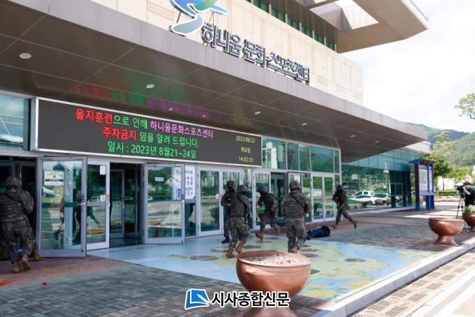 [½Ã»çÁ¾ÇսŹ® = ¿À½ÂÅà ±âÀÚ] ȼø±ºÀº 2023 À»Áö¿¬½ÀÀÇ ÀÏȯÀ¸·Î 22ÀÏ ¿ÀÈÄ 2½Ã ÇÏ´Ï¿ò¹®È½ºÆ÷Ã÷¼¾ÅÍ¿¡¼ ±º¡¤°æ¡¤¼Ò¹æ°ú Çù·ÂÇÑ Å×·¯¡¤ÈÀç ´ëºñ ½ÇÁ¦ ÈÆ·ÃÀ» ÁøÇàÇÏ¿´´Ù.