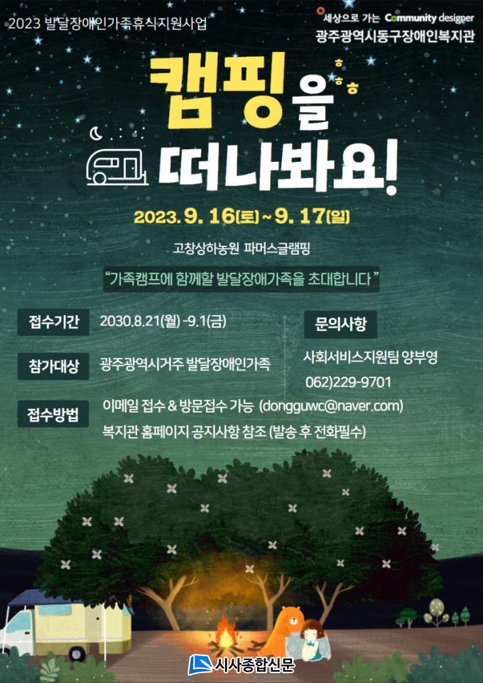±¤ÁÖ±¤¿ª½Ã¿¡ °ÅÁÖÇÏ´Â ¹ß´ÞÀå¾ÖÀÎ °¡Á·¸¸ ½ÅûÇÒ ¼ö ÀÖÀ¸¸ç, À̹ø ¿©Çà Áö¿øÀº °¡Á·Ä·ÇÁ·Î °íâ »óÇÏ³ó¿ø ±Û·¥ÇÎÀå¿¡¼ 1¹Ú2ÀÏÀÇ ÀÏÁ¤À¸·Î ÁøÇàµÈ´Ù.