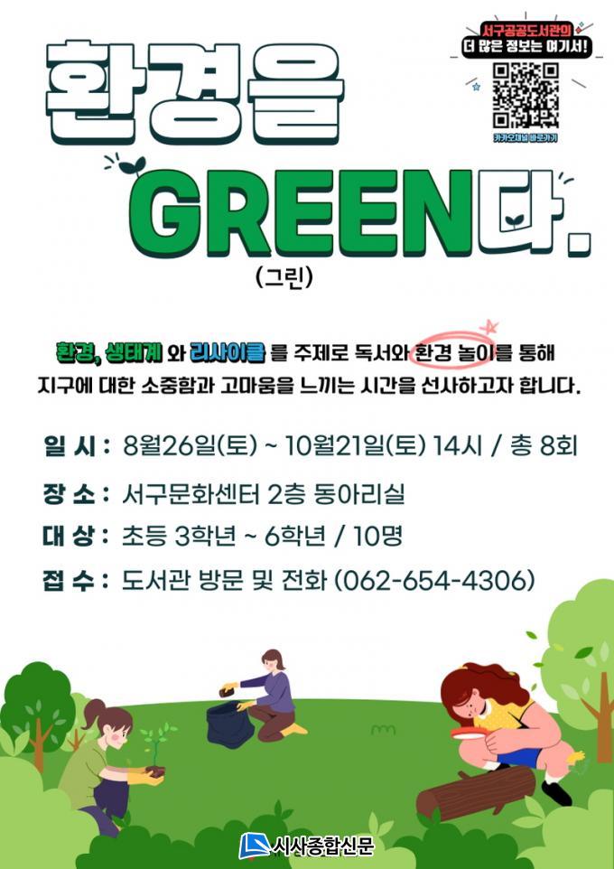 [½Ã»çÁ¾ÇսŹ® = ¿À½ÂÅà ±âÀÚ] ±¤ÁÖ ¼±¸°ø°øµµ¼°üÀº °³ÀÎÀÇ È¯°æ¹®Á¦ Àνİú ģȯ°æÀ» ½ÇõÇϱâ À§ÇØ ¿À´Â 8¿ù 26ÀÏ Åä¿äÀϺÎÅÍ Ãʵî 3~6ÇгâÀ» ´ë»óÀ¸·Î ¡®È¯°æÀ» GREEN´Ù¡¯¸¦ ÁøÇàÇÑ´Ù.