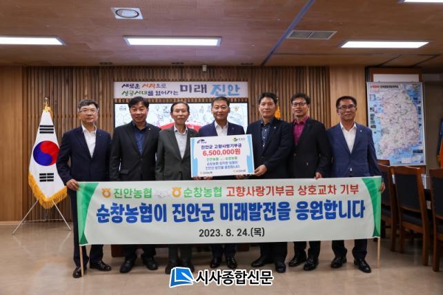 Áö³ 21ÀÏ ¼øÃ¢±ºÃ»¿¡¼ ÁøÇàµÈ ±âºÎ¿¡ ÀÌ¾î º¯¼º¼· Áø¾È±ºÁöºÎÀå°ú À̺´Èñ ¼øÃ¢±ºÁöºÎÀå, ±è¹®Á¾ Áø¾È³óÇù Á¶ÇÕÀå, ±è¼ºÃ¶ ¼øÃ¢³óÇù Á¶ÇÕÀå µî ¾ç ³óÇùÀÇ ÀÓÁ÷¿øµéÀÌ Áø¾È±ºÃ»À» ¹æ¹®ÇÏ¿© ±âºÎ±ÝÀ» Àü´ÞÇß´Ù.