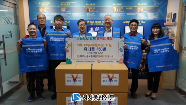 [½Ã»çÁ¾ÇսŹ® = °í¼º¹Î ±âÀÚ] Á¦Áֽſ뺸ÁõÀç´Ü(ÀÌ»çÀå ±è±¤¼)Àº Áö³ 24ÀÏ Á¦ÁÖÆ¯º°ÀÚÄ¡µµ»çȸº¹ÁöÇùÀÇȸ(ȸÀå °í½ÂÈ)¸¦ ¹æ¹®ÇØ Áö¿ª»çȸºÀ»ç´Ü Ȱµ¿À» À§ÇÑ À¯´ÏÆû 450¹ú(700¸¸¿ø »ó´ç)À» Àü´ÞÇß´Ù.
