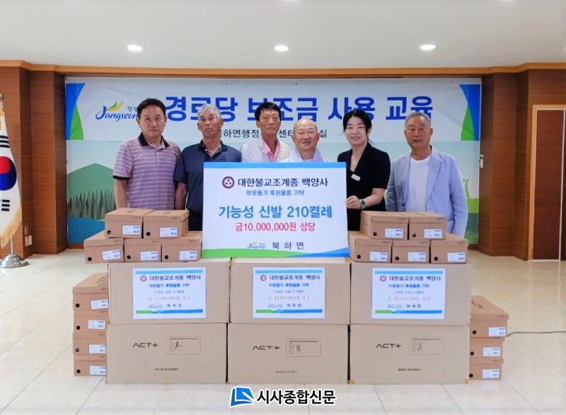 [½Ã»çÁ¾ÇսŹ® = ¿À½ÂÅà ±âÀÚ] À强±º ¹é¾ç»ç°¡ 24ÀÏ ºÏÇϸé ÇàÁ¤º¹Áö¼¾ÅÍ °æ·Î´ç¿¡¼ ¿¸° º¸Á¶±Ý Á¤»ê±³À°¿¡ ¾Õ¼ ½Å¹ß 210ÄÓ·¹(1000¸¸ ¿ø »ó´ç)¸¦ ±âŹÇß´Ù. ±âŹǰÀº ±ÙÀ° ÀÌ¿Ï, ±äÀå ¿ÏÈ, ¹ß ±³Á¤ µî¿¡ µµ¿òÀ» ÁÖ´Â ±â´É¼º ½Å¹ßÀÌ´Ù.