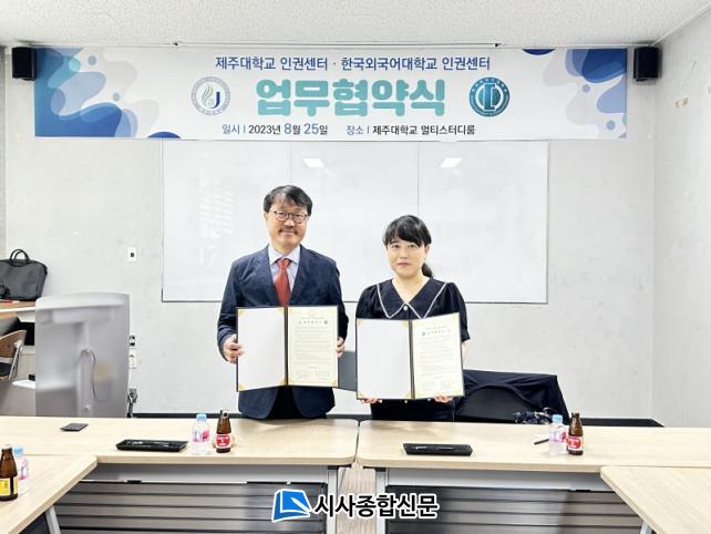[½Ã»çÁ¾ÇսŹ® = °í¼º¹Î ±âÀÚ] Á¦ÁÖ´ëÇб³ ÀαǼ¾ÅÍ(¼¾ÅÍÀå ±è¿µ¸®)¿Í Çѱ¹¿Ü±¹¾î´ëÇб³ ÀαǼ¾ÅÍ(¼¾ÅÍÀå ¹ÚÈñÈ£)°¡ Áö³ 25ÀÏ Á¦ÁÖ´ë¿¡¼ ´ëÇÐ ÀαǼ¾ÅÍ °£ Çù·Âü°è ±¸ÃàÀ» À§ÇÑ ¾÷¹«Çù¾àÀ» ü°áÇß´Ù°í 28ÀÏ ¹àÇû´Ù.