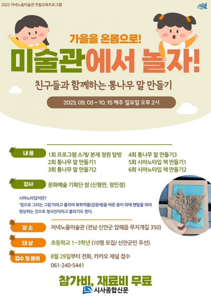 ¡®°¡À»À» ¿Â¸öÀ¸·Î! ¹Ì¼ú°ü¿¡¼ ³îÀÚ!¡¯ ÇÁ·Î±×·¥Àº ¾î¸°ÀÌ Âü¿©ÀÚ¿Í ¿¹¼ú °»ç°¡ ÇÔ²² ºÐÀçÁ¤¿øÀÇ ÀÚ¿¬À» Ž»öÇϰí Á¤¿ø ¼Ó ¼Ö¹æ¿ï, ³ª¹µÀÙ µî Á÷Á¢ äÁýÇÏ¿© À̸¦ Ȱ¿ëÇØ °øµ¿ÀÛǰ¡®Å볪¹« ¸» ¸¸µé±â¡¯, ¡®½Ã¾Æ³ëŸÀÔ Ã¥ ¸¸µé±â¡¯ Ȱµ¿À» ÁøÇàÇÒ ¿¹Á¤ÀÌ´Ù. Âü¿© ¿¹¼ú °»ç´Â ¸ñÆ÷¿¡¼ Ȱµ¿Çϴ û³â¹®È¿¹¼ú´ÜüÀÎ ¹®È¿¹¼ú±âȹ´Ü ½Ó¿¡¼ Âü¿©ÇÑ´Ù.