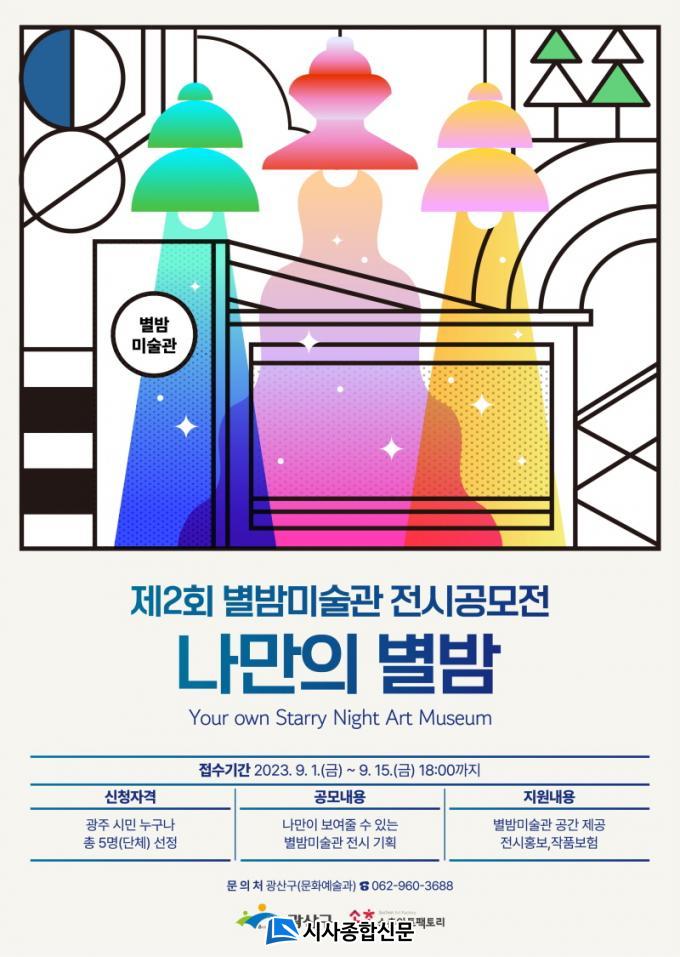 °ø¸ðÀüÀº 9¿ù 1ÀϺÎÅÍ 15ÀϱîÁö ÁøÇàÇϸç, ±¤ÁֽùΠ´©±¸³ª Âü¿©ÇÒ ¼ö ÀÖ´Ù. ±¤»ê±¸ µµ½É°ø¿ø 5°³¼Ò(÷´Ü‧¼ö¿Ï‧¿î³²‧½Åâ‧¼±¿î)¿¡ Á¶¼ºµÈ ¡®º°¹ã¹Ì¼ú°ü¡¯ °ø°£À» Ȱ¿ë, ȸÈ‧Á¶°¢‧¼³Ä¡‧°ø¿¹‧»çÁø µî ½Ã°¢¿¹¼ú ÀÛǰÀ̳ª À¯¹°, °¡º¸ µîÀ» Àü½Ã ±âȹÇÏ´Â ³»¿ëÀÌ´Ù.
