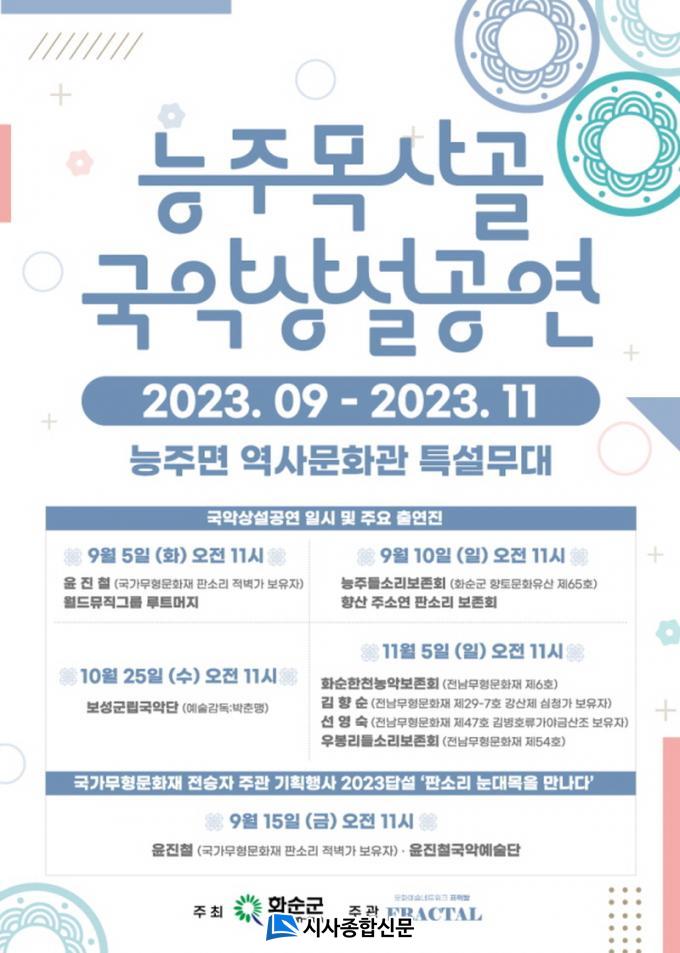 ÆÇ¼Ò¸®·Î´Â À±ÁøÃ¶ ±¹°¡¹«Çü¹®ÈÀç, ±èÇâ¼ø, ¼±¿µ¼÷ Àü³²¹«Çü¹®ÈÀç°¡ °ø¿¬ÇÏ°í ³ó¾ÇÀ¸·Î´Â ȼø±º ÇâÅä¹®ÈÀ¯»êÀÎ ´ÉÁÖµé¼Ò¸®º¸Á¸È¸, Àü³²¹«Çü¹®ÈÀçÀΠȼøÇÑû³ó¾Çº¸Á¸È¸, ¿ìºÀ¸®µé¼Ò¸®º¸Á¸È¸°¡ °ø¿¬À» ÆîÄ£´Ù.