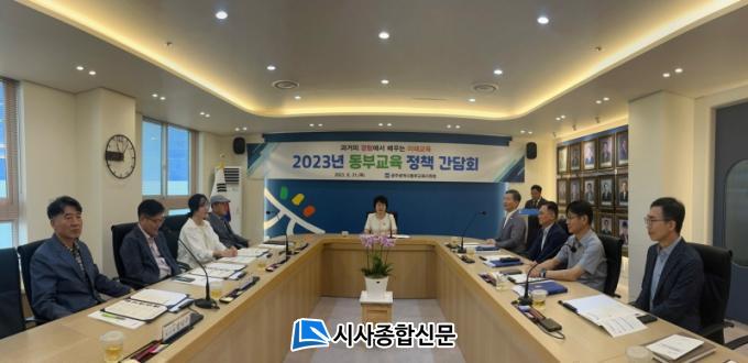 1ÀÏ µ¿ºÎ±³À°Áö¿øÃ»¿¡ µû¸£¸é À̹ø °£´ãȸ¿¡´Â ¡ãÁ¦6´ë Á¤Çü¼ö ±³À°Àå ¡ãÁ¦12´ë ½ÉÇüÈñ ±³À°Àå ¡ãÁ¦16´ë ±èöȣ ±³À°Àå ¡ãÁ¦17´ë Á¤³«ÁÖ ±³À°Àå ¡ãÁ¦18´ë Á¤¼º¼÷ ±³À°Àå ÃÑ 5¸íÀÇ Àü¡¤ÇöÁ÷ ±³À°ÀåÀÌ Âü¼®ÇØ ±¤ÁÖ µ¿ºÎ±³À°ÀÇ ¹ßÀü ¹æÇâ¿¡ ´ëÇÑ ÀǰßÀ» ³ª´³´Ù.
