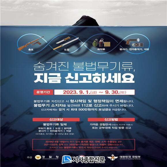 ºÒ¹ý¹«±â·ù ÀÚÁø½Å°í ´ë»óÀº Çã°¡ ¾øÀÌ ¼ÒÁöÇϰí Àְųª ¼ÒÁö Çã°¡°¡ Ãë¼ÒµÈ Ãѱâ, Ⱦà·ù(Ⱦà‧Æø¾à‧½Çź‧Æ÷ź µî), µµ°Ë, ºÐ»ç±â, ÀüÀÚÃæ°Ý±â, ¼®±Ã µî ºÒ¹ý¹«±â·ù ÀÏüÀÌ´Ù.