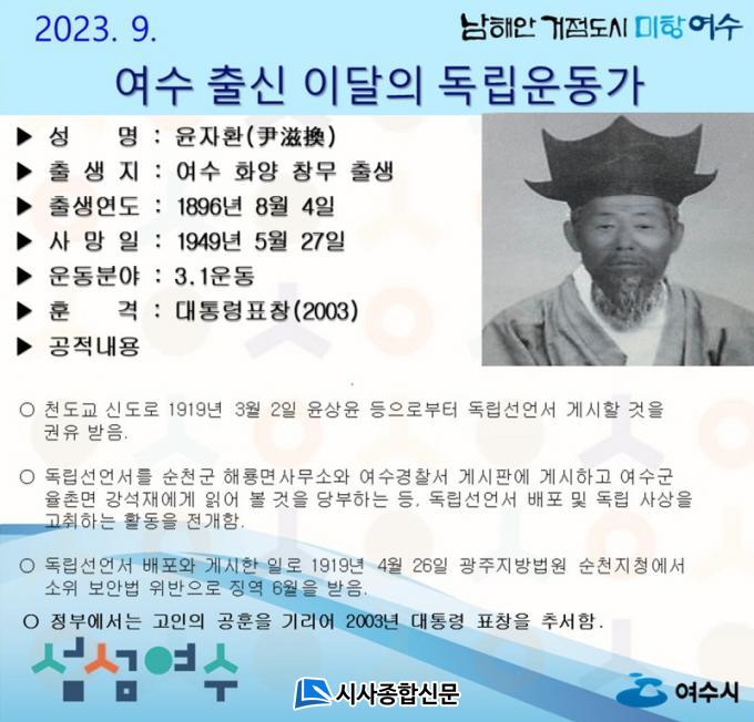 À±ÀÚȯ ¼±»ýÀº õµµ±³ ½Åµµ·Î 1919³â 3¿ù 2ÀÏ À±»óÀ± µîÀ¸·ÎºÎÅÍ µ¶¸³¼±¾ð¼¸¦ °Ô½ÃÇÒ °ÍÀ» ±ÇÀ¯ ¹Þ¾Ò´Ù. µ¶¸³¼±¾ð¼¸¦ ¼øÃµ±º ÇØ·æ¸é»ç¹«¼Ò¿Í ¿©¼ö°æÂû¼ °Ô½ÃÆÇ¿¡ °Ô½ÃÇÏ°í ¿©¼ö±º À²ÃÌ¸é °¼®Àç¿¡°Ô ÀÐ¾î º¼ °ÍÀ» ´çºÎÇÏ´Â µî µ¶¸³¼±¾ð¼ ¹èÆ÷ ¹× µ¶¸³ »ç»óÀ» °íÃëÇϴ Ȱµ¿À» Àü°³Çß´Ù.