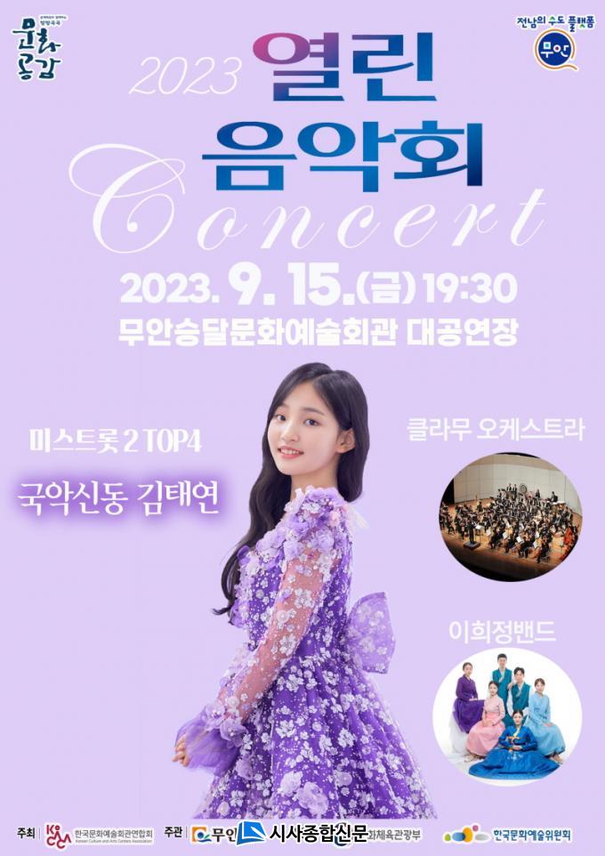 ÇÑÆí, À̹ø °ø¿¬Àº Çѱ¹¹®È¿¹¼úȸ°ü¿¬ÇÕȸ°¡ ÁÖÃÖÇÏ°í ¹«¾È±º, (»ç)Ŭ¶ó¹«°¡ ÁÖ°üÇÏ¸ç ¹®ÈüÀ°°ü±¤ºÎ, Çѱ¹¹®È¿¹¼úÀ§¿øÈ¸°¡ ÈÄ¿øÇÏ´Â ¡®2023³â ¹®¿¹È¸°ü°ú ÇÔ²²ÇÏ´Â ¹æ¹æ°î°î ¹®È°ø°¨»ç¾÷¡¯¿¡ µû¶ó ÃßÁøµÈ´Ù.