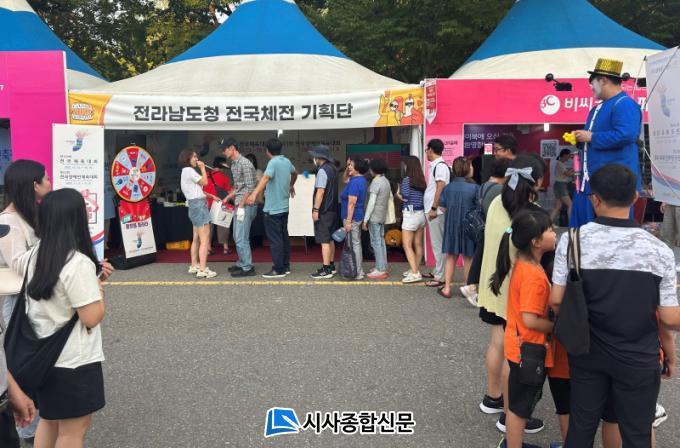 Àü³²µµ´Â ¿©¸§ ¹ã ºÐÀ§±â¿¡ ¾î¿ï¸®´Â ¾ß±¤ÆÈÂî, ¿¡ÄÚ¹é, Ÿ¿Ã, õ¿¬ºñ´© µîÀÇ Àü±¹Ã¼Àü È«º¸¹°Ç°À» À̺¥Æ®¿¡ Âü¿©ÇÏ´Â °ü¶÷°´¿¡°Ô ¹èºÎÇß´Ù. ¶Ç üÀü Ű´Ù¸® »ß¿¡·Î¿ÍÀÇ ±â³äÃÔ¿µ, ·ê·¿µ¹¸®±â, ´©¸®¼ÒÅë¸Á(SNS) ÀÎÁõ¼¦ ¿Ã¸®±â, Ãß¾ïÀÇ »Ì±â µî °ü¶÷°´µéÀÇ ´Ù¾çÇÑ Âü¿©¿Í °ü½ÉÀ» À¯µµÇϴ üÇèÇü È«º¸°üÀ» ¿î¿µÇØ Å« Àα⸦ ´©·È´Ù.