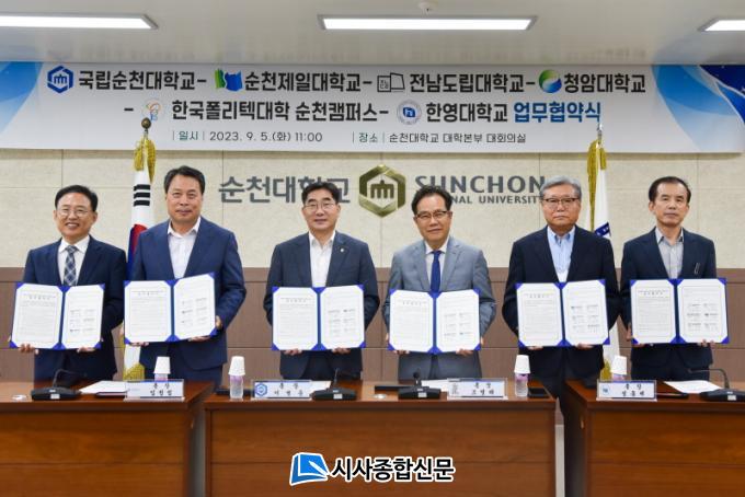 [½Ã»çÁ¾ÇսŹ® = Àå¹Î±Ô ±âÀÚ] ±¹¸³ ¼øÃµ´ëÇб³(ÃÑÀå À̺´¿î)´Â 5ÀÏ ¼øÃµÁ¦ÀÏ´ë(ÃÑÀå ¼ºµ¿Á¦)¡¤Àü³²µµ¸³´ë(ÃÑÀå Á¶¸í·¡)¡¤Ã»¾Ï´ë(ÃÑÀåÁ÷¹«´ëÇà ±è¼ºÈ«)¡¤Çѱ¹Æú¸®ÅØ´ëÇÐ ¼øÃµÄ·ÆÛ½º(ÇÐÀå ÀÌÁ¾°ü)¡¤ÇÑ¿µ´ë(ÃÑÀå ÀÓÁ¤¼·)°ú ¡®¿ì¼ö °¼ÒÁö¿ª±â¾÷ À°¼º ¹× Áö¿ª ¿ì¼ö ÀÎÀç ¾ç¼º¡¯À» À§ÇÑ ¾÷¹«Çù¾àÀ» ü°áÇß´Ù°í ¹àÇû´Ù.