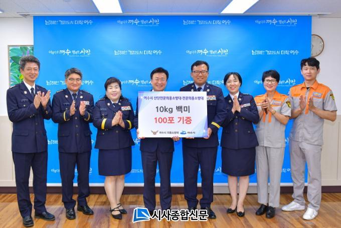 | ¿©¼ö½Ã »ê´ÜÀü¹®ÀÇ¿ë¼Ò¹æ´ë¿Í Àü¹®ÀÇ¿ë¼Ò¹æ´ë´Â 7ÀÏ ÀÌ¿ôµ½±â¸¦ À§ÇÑ ¹é¹Ì 100Æ÷(10kg)¸¦ ¿©¼ö½Ã¿¡ Àü´ÞÇß´Ù.
