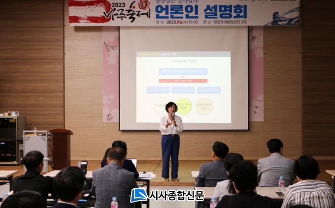 ³ªÁÖ½Ã(½ÃÀå À±º´ÅÂ)´Â Àü³¯ ¿ÀÈÄ 3½Ã ¿µ°µ¿ ¾î¿ï¸²¼¾ÅÍ ´ë°´ç¿¡¼ ÃàÁ¦ÃßÁøÀ§¿øÈ¸ ÁÖ°üÀ¸·Î ¡®2023 ³ªÁÖÃàÁ¦, ¿µ»ê°Àº »ì¾ÆÀÖ´Ù¡¯ ¾ð·ÐÀÎ ¼³¸íȸ¸¦ °¡Á³´Ù°í 7ÀÏ ¹àÇû´Ù.