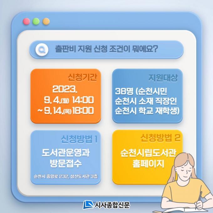 | ¼øÃµ½Ã, ¡®ÇϹݱ⠽ùΠå ÃâÆÇºñ Áö¿ø »ç¾÷¡¯ ÃßÁø ½ÅûÀº 9¿ù 14ÀϱîÁö, Ã¥ 5±Ç Á¦ÃâÀº 10¿ù 31ÀϱîÁö |