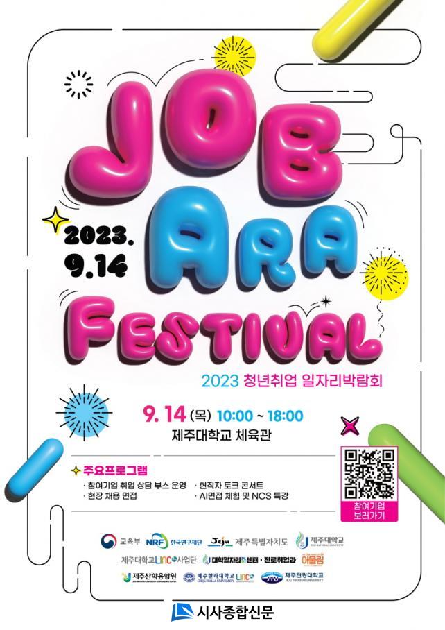 '2023 û³âÃë¾÷ ÀÏÀÚ¸®¹Ú¶÷ȸ JOB-ARA FESTIVAL'Àº Á¦ÁÖÁö¿ª¿¡¼ ±¸Á÷À» Èñ¸ÁÇϴ û³âÀÌ¸é ´©±¸³ª Âü¿©ÇÒ ¼ö ÀÖÀ¸¸ç, Âü°¡ÀÚ¸¦ ´ë»óÀ¸·Î ÇÑ °æÇ° ¹× À̺¥Æ®µµ ´Ù¾çÇÏ°Ô ÁøÇàµÈ´Ù.