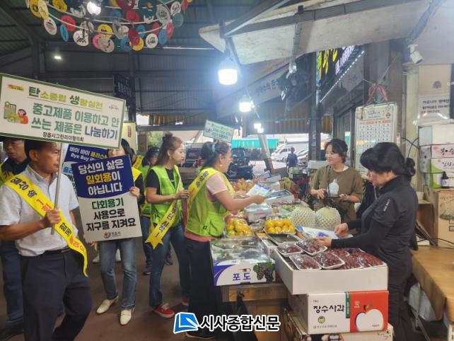 À̳¯ ±×¸°¸®´õÇùÀÇȸ ȸ¿ø°ú °ø¹«¿ø µî 20¿©¸íÀº »ù°íÀ»½ÃÀå ¿Í±Û¿Í±Û°¡¿äÁ¦¿¡ Âü¿©ÇÏ´Â ½Ã¹Î°ú ÀüÅë½ÃÀå À̿밴¿¡°Ô õ¿¬ºñ´©¿Í ź¼ÒÁ߸³ »ýȰ½Çõ Àü´ÜÁö µîÀ» ³ª´²ÁÖ¸ç ±âÈÄÀ§±â¿Í ź¼ÒÁ߸³ÀÇ Á߿伺À» ¾Ë¸®°í ź¼ÒÁ߸³Æ÷ÀÎÆ® Âü¿©¸¦ µ¶·ÁÇß´Ù.