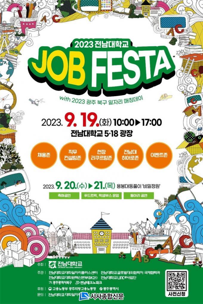 9¿ù 19ÀÏ ¿ÀÀü 10½Ã Çг» 5¡¤18±¤Àå ÀÏ´ë¿¡¼´Â Àü³²´ë ´ëÇÐÀÏÀÚ¸®Ç÷¯½º¼¾ÅÍ(¼¾ÅÍÀå ³²È£Á¤ ±³¼ö)°¡ ÁÖ°üÇÏ´Â ¡®2023 Àü³²´ëÇб³ Àâ Æä½ºÅ¸¡¯(JOB FESTA)°¡ ¿¸®°í, Çг» ¿ëÁö°ü¿¡¼´Â ÀÌ¿Í ¿¬°èÇÑ ¡®2023 ºÏ±¸ ÀÏÀÚ¸®¸Åε¥ÀÌ¡¯°¡ ±¤Áֽà ºÏ±¸(±¸Ã»Àå ¹®ÀÎ) ÁÖ°üÀ¸·Î ¿¸°´Ù.