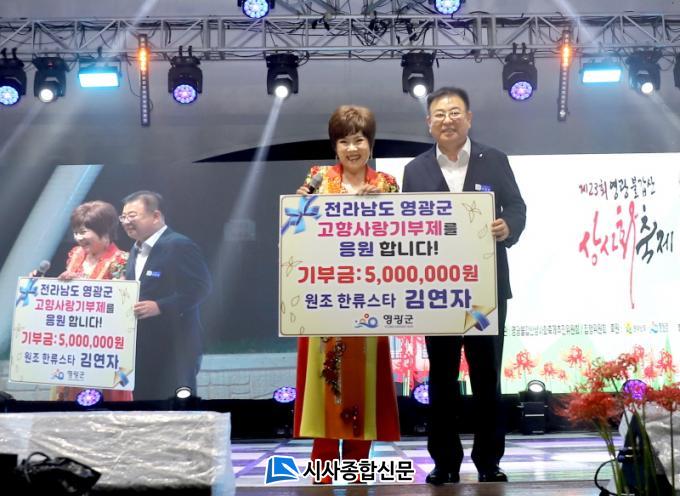 [½Ã»çÁ¾ÇսŹ® = ¿À½ÂÅà ±âÀÚ] ´ëÇѹα¹ ´ëÇ¥°¡¼öÀÌÀÚ ¿øÁ¶ ÇÑ·ù ½ºÅ¸ ±è¿¬ÀÚ°¡ Áö³ 9¿ù 15ÀÏ Á¦23ȸ ¿µ±¤ºÒ°©»ê»ó»çÈÃàÁ¦ ±â³ä½Ä¿¡ Âü¼®ÇÏ¿© °íÇâ»ç¶û±âºÎ±Ý ÃÖ°í¾×ÀÎ 5¹é¸¸ ¿øÀ» ±âºÎÇß´Ù.
