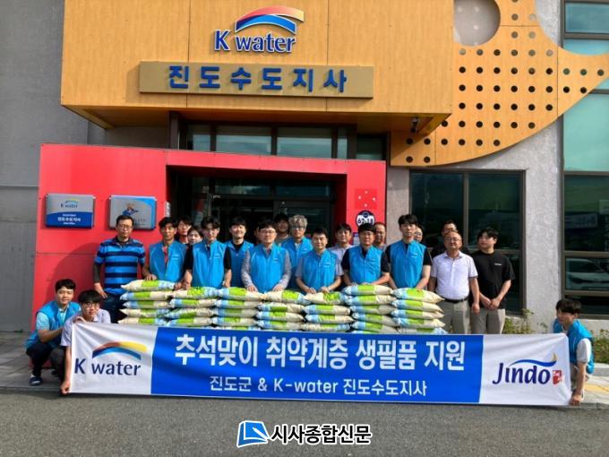 [½Ã»çÁ¾ÇսŹ® = ¿À½ÂÅà ±âÀÚ] K-water Áøµµ¼öµµÁö»ç(Áö»çÀå : Á¶Àçâ)´Â Ãß¼® ¸íÀýÀ» ¸Â¾Æ 9.19¿¡ Á÷¿øµéÀÇ ¼º±Ý 260¸¸¿øÀ¸·Î Áøµµ¹Ì 10kg 80Æ÷´ë¸¦ ±¸¸ÅÇÏ¿© Áö³ 1³â µ¿¾È ´Ü¼ö°¡ ¹ß»ýÇÏ¿´´ø 41°³ ¸¶À»È¸°üÀ» ¹æ¹®ÇÏ¿© ½Ò°úÀ½¿ë¿ë ¼öµ¾¹° º´¹°¹Ú½º¸¦ Àü´ÞÇÏ¿´´Ù.
