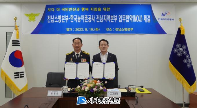 [½Ã»çÁ¾ÇսŹ® = ¿À½ÂÅà ±âÀÚ] Àü³²¼Ò¹æº»ºÎ(º»ºÎÀå È«¿µ±Ù)´Â 19ÀÏ È¸Àǽǿ¡¼ Çѱ¹³ó¾îÃ̰ø»ç Àü³²Áö¿ªº»ºÎ(º»ºÎÀå Á¶¿µÈ£)°¡ ¼ÕÀ» ¸ÂÀâ°í µµ¹Î ¾ÈÀüÀ» À§ÇÑ Àç³´ëÀÀ Çù·Âü°è ¾÷¹«Çù¾àÀ» Çß´Ù.