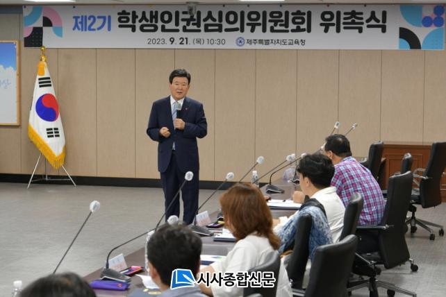 [½Ã»çÁ¾ÇսŹ® = °í¼º¹Î ±âÀÚ] Á¦ÁÖÆ¯º°ÀÚÄ¡µµ±³À°Ã»(±³À°°¨ ±è±¤¼ö)Àº 9¿ù 21ÀÏ(¸ñ) º»Ã» Á¦5ȸÀǽǿ¡¼ Á¦2±â¡®ÇлýÀαǽÉÀÇÀ§¿øÈ¸¡¯À§Ã˽ÄÀ» °®°í, À§¿øµé¿¡°Ô À§ÃËÀåÀ» Àü´ÞÇß´Ù.