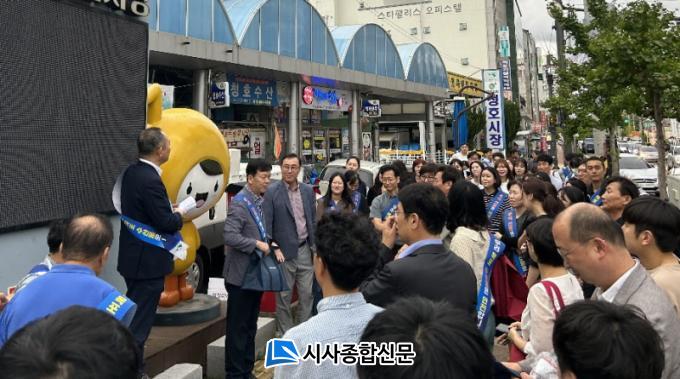 ¸ñÆ÷½Ã °øÁ÷ÀÚµéÀÌ Áö³ 21ÀÏ Ã»È£½ÃÀå¿¡¼ ¼ö»ê¹° ¼Òºñ Ȱ¼ºÈ¸¦ À§ÇÑ À庸±â Çà»ç¸¦ °¡Á³´Ù.
