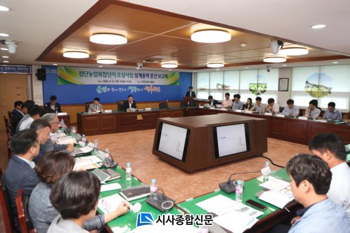 À̳¯ º¸°íȸ´Â ±è»ê ±º¼ö¿Í ±è¼ºÈÆ ºÎ±º¼ö, ±âȹ½ÇÀå µî °ü°è ½Ç°úÀå, ³ó¾÷±â¼ú¼¾ÅÍ ¼ÒÀå°ú °úÀå, ÆÀÀåµéÀÌ Âü¼®ÇÏ¿© ¼³°è¿ë¿ª Àü¹ÝÀÇ ÁøÇà °úÁ¤À» Á¡°ËÇÏ°í º¸¿ÏÇÏ´Â ½Ã°£À¸·Î ÁøÇàµÆ´Ù.