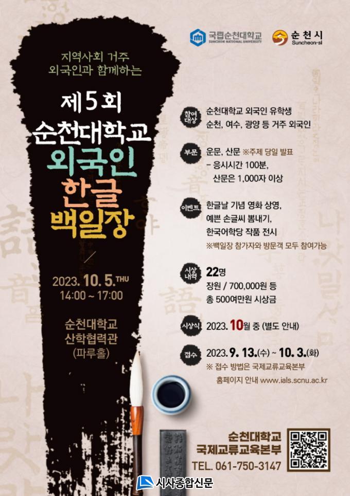½ÅÁ¤½Å ¼øÃµ´ëÇб³ ±¹Á¦±³·ù±³À°º»ºÎÀåÀº ¡°À̹ø Çà»ç¸¦ ÅëÇØ ¼øÃµ´ëÇб³ ¿Ü±¹ÀÎ À¯Çлý ¹× Áö¿ª»çȸ °ÅÁÖ ¿Ü±¹ÀÎ, ÀαÙÁö¿ª ´ëÇÐÀÇ ¿Ü±¹ÀÎ À¯ÇлýµéÀÌ Çѱ¹¾î ½Ç·ÂÀ» »Ë³»°í °Ü·ç´Â ÀåÀÌ µÉ °ÍÀ̸ç, ¿Ü±¹Àε鿡°Ô Çѱ۳¯ÀÇ Àǹ̸¦ ±íÀÌ »õ±æ ¼ö ÀÖ´Â ±âȸ°¡ µÉ °ÍÀ¸·Î ±â´ëÇÑ´Ù.¡±°í ¸»Çß´Ù.