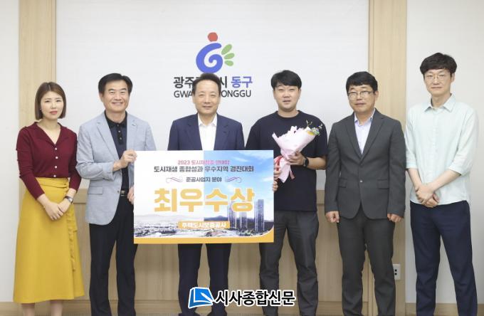 [½Ã»çÁ¾ÇսŹ® = ¿À½ÂÅà ±âÀÚ] ±¤ÁÖ µ¿±¸(ûÀå ÀÓÅÃ)´Â ±¹Åä±³ÅëºÎ¿Í ÃæÃ»³²µµ õ¾È½Ã°¡ ÁÖÃÖÇϰí ÁÖÅõµ½Ãº¸Áõ°ø»ç(HUG)°¡ ÁÖ°üÇÏ´Â ¡®2023 µµ½ÃÀçâÁ¶ ÇѸ¶´ç¡¯¿¡¼ ¡®µµ½ÃÀç»ý Á¾ÇÕ¼º°ú ¿ì¼öÁö¿ª °æÁø´ëȸ¡¯ Áذø »ç¾÷Áö ºÎ¹® ÃÖ¿ì¼ö»óÀ» ¼ö»óÇÏ´Â Äè°Å¸¦ ´Þ¼ºÇß´Ù°í ¹àÇû´Ù.