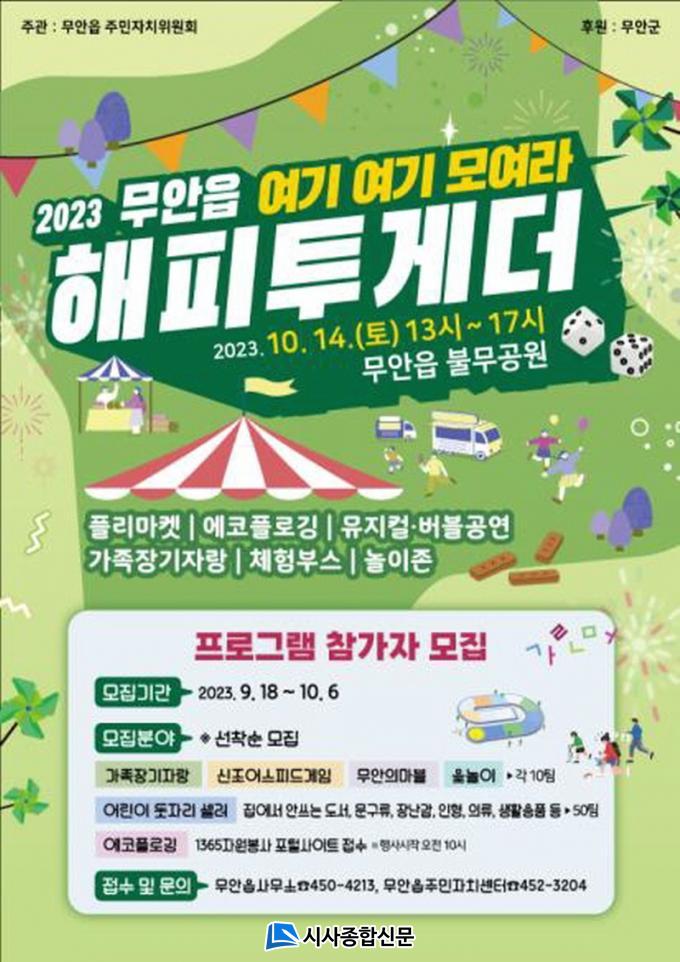 ÇÁ·Î±×·¥ Âü°¡ÀÚ ¸ðÁýÀº ¡â¾î¸°ÀÌ µ¾ÀÚ¸® º·è½ÃÀå ¡â°¡Á·Àå±âÀÚ¶û ¡â¹«¾ÈÀÇ ¸¶ºí°ÔÀÓ ¡âÀ·³îÀÌ ´ëȸ ¡â½ÅÁ¶¾î ½ºÇǵå°ÔÀÓ µî 6°³ ºÐ¾ß·Î 10¿ù 6ÀϱîÁö ¼±Âø¼ø ¸ðÁýÇÏ¸ç ¹«¾ÈÀ¾»ç¹«¼Ò Ãѹ«ÆÀ(450-4213), ¹«¾ÈÀ¾ÁÖ¹ÎÀÚÄ¡¼¾ÅÍ(452-3204)·Î ½ÅûÇÏ¸é µÈ´Ù.