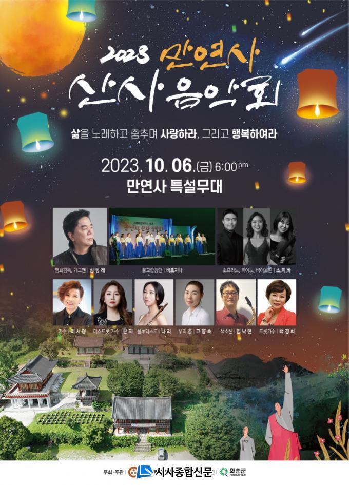 À̹ø »ê»çÀ½¾Çȸ´Â ¿µÈ°¨µ¶ÀÌÀÚ °³±×¸ÇÀÎ ½ÉÇü·¡, ¹Ì½ºÆ®·Ô À±Áö, °¡¼ö À̼Çü, »ö¼ÒÆù ÀÓ³«Çö, ¸¸¿¬»ç ÇÕâ´Ü ºñ·ÎÀÚ³ª¸¦ ºñ·ÔÇÑ ¿ì¸® Ãã °íÇâ¼÷ µî ´Ù¾çÇÑ À帣ÀÇ °ø¿¬À¸·Î »ê»çÀÇ Ç³°æ°ú ÇÔ²² ¾Æ¸§´Ù¿î À½¾ÇÀ» °¨»óÇÏ¸ç ¸¶À½ÀÇ Æò¾ÈÀ» ¾ò´Â °¡À»¹ãÀÌ µÉ °ÍÀ¸·Î ±â´ëµÈ´Ù.